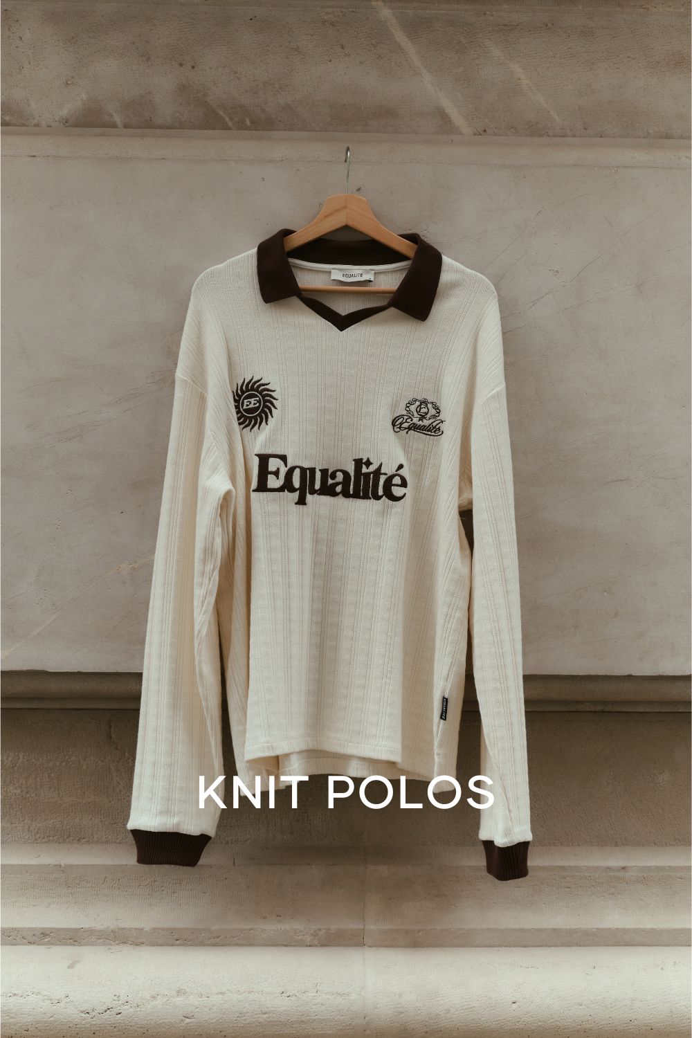 ASH KNIT LONGSLEEVE POLO OFF-WHITE & BROWN