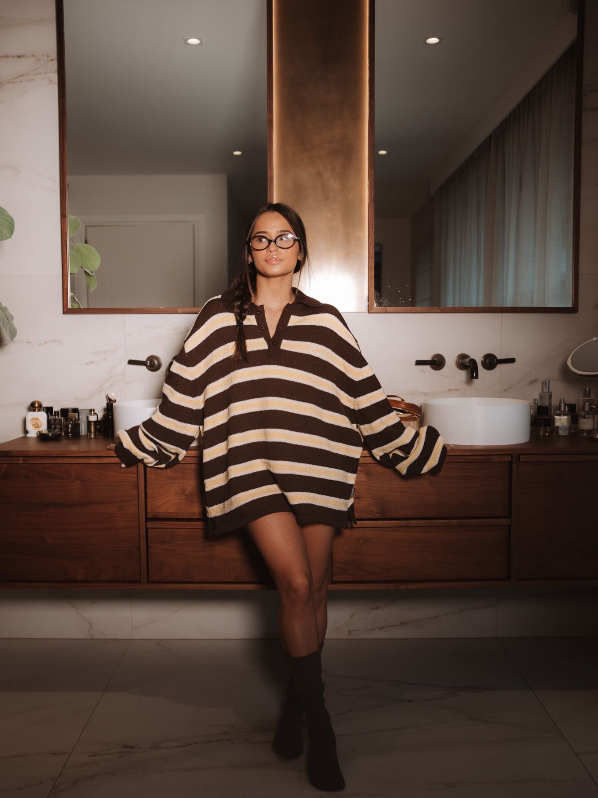 FINN KNIT POLO STRIPED BROWN/YELLOW/WHITE