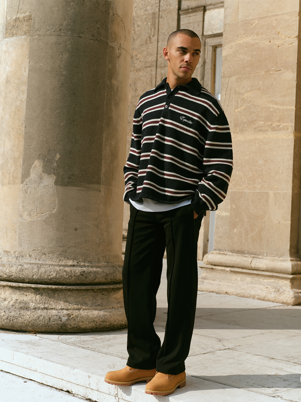 KNIT JERSEY LONGSLEEVE POLO BLACK
