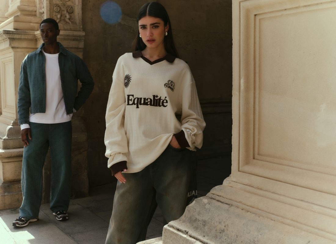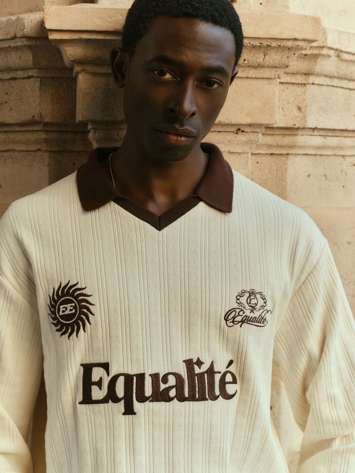 ASH KNIT LONGSLEEVE POLO OFF-WHITE & BROWN