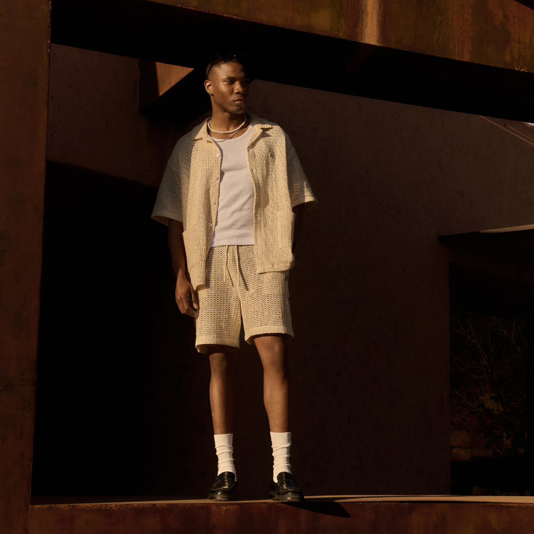 Get to know the Equalité Lyra knitted croched shirt in off-white The shirt has an oversized fit and features a button closure, a point collar and slit pockets. The shirt has an embroidered Societé symbol on the left chest. This Lyra knitted croched shirt is part of a set and can be combined with matching shorts.