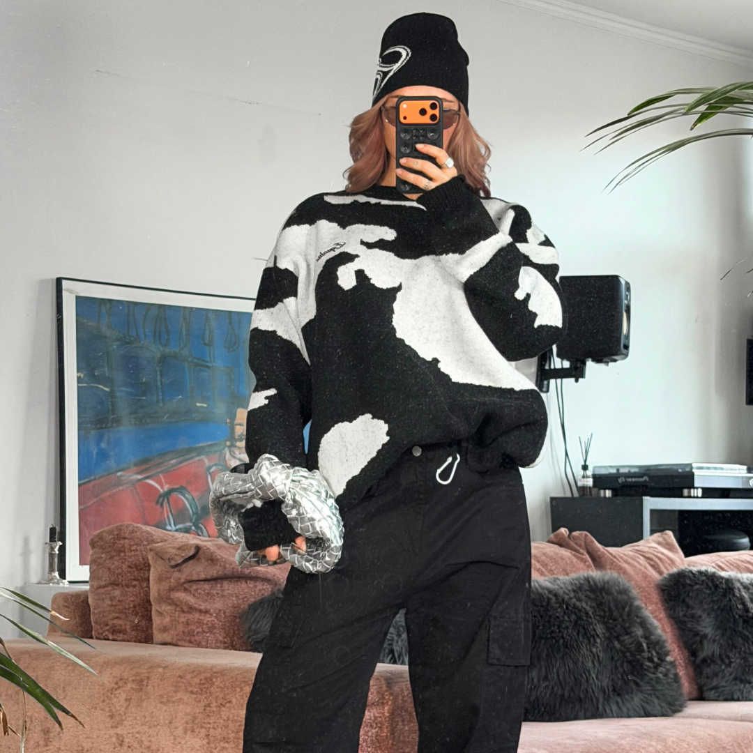 CAMO KNIT SWEATER BLACK & OFF-WHITE