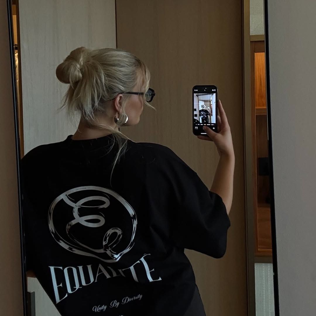 Discover de Equalité Chloé Boxy Tee in Black. De tee heeft een boxy fit met een ronde kraag en is voorzien van een witte zeefdruk van het Chloé logo op de borst en op de rug.