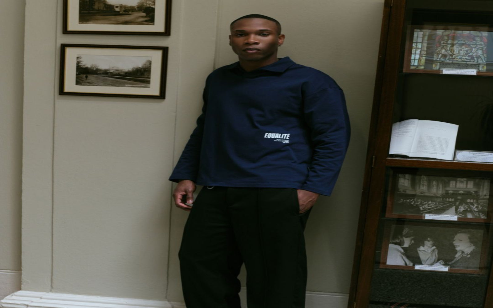 Discover de Equalité Elia Longsleeve Tee in Navy. De longsleeve tee heeft een oversized fit en is voorzien van een polo kraag. Op de zij en de rug zit een witte zeefdruk van het Elia artwork.