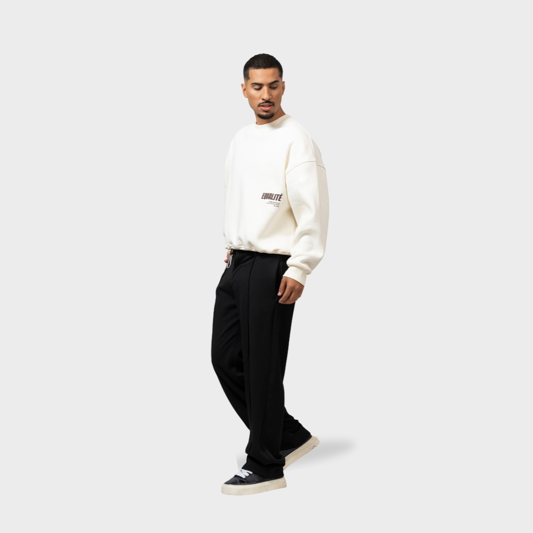 Discover de Equalité Elia Oversized Sweater in Off-White. De oversized sweater heeft een oversized fit en is voorzien van een ronde kraag. Op de zij en de rug zit een bruine zeefdruk van het Elia artwork.