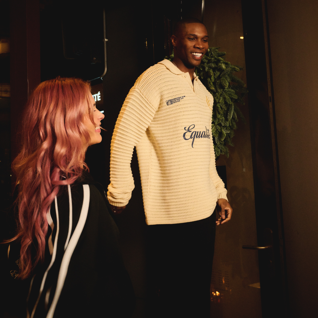 Get to know de Equalité Heritage Rib Knit Polo in Off-White. De heritage rib knit polo heeft een oversized fit met een polo kraag. De borst en rug zijn voorzien van een blauw geborduurd artwork van het EQLT logo.