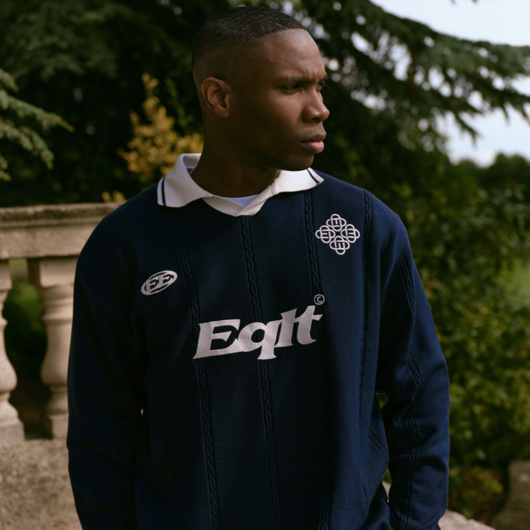 Get to know de Equalité Knit jersey longsleeve polo in Navy. De Knit jersey longsleeve polo heeft een oversized fit met een polo kraag. De borst en rug zijn voorzien van een wit geborduurd artwork van het EQLT logo.
