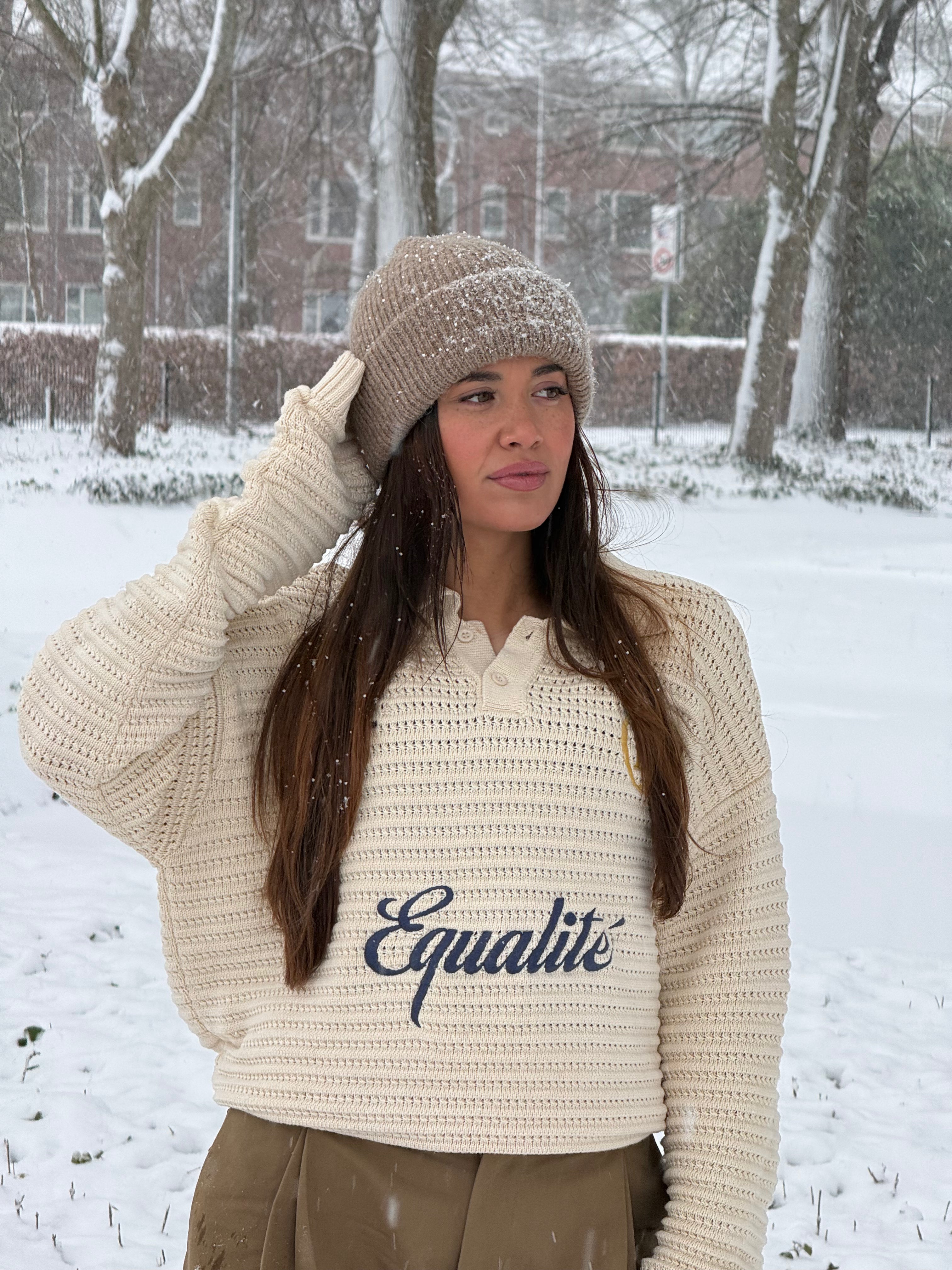 Meet de Equalité Societé 2.0 Oversized Tee in Taupe & Taupe. De tee heeft een oversized fit met een ronde kraag. De linkerborst en de rug zijn voorzien van een taupe puffdruk van het signature Societé logo, geïnspireerd op onze exclusieve Membersclub.