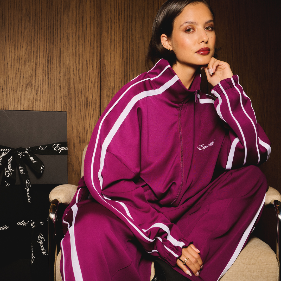 Discover de Equalité track pants in Deep Purple. De pants heeft een oversized fit met twee steekzakken voorzien van een rits, gaasvoering, een mid-rise taille met trekkoord. De pants is voorzien van een wit geborduurd signature Equalité logo op het linkerbeen en het symbol logo op de achterkant van het rechterbeen. De pants is onderdeel van een set en is te combineren met een bijpassende jacket.